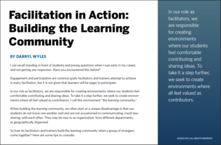 So how do facilitators and trainers build the learning community when a group of strangers come together? Here are some tips to consider.