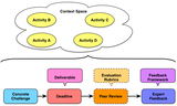 Then, for each activity, we should have a concrete outcome we’re looking for. Ideally, the learner is given a concrete deliverable as an outcome that they must produce (that mimics the type of outcome we’re expecting them to be able to create as an outcome of the learning, whether decision, work product, or..). Ideally we’re in a social situation and they’re working as a team (or not) and the work can be circulated for peer review. Regardless, then there should be expert oversight on feedback.